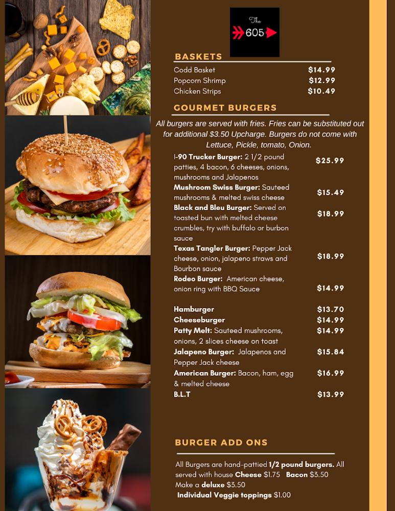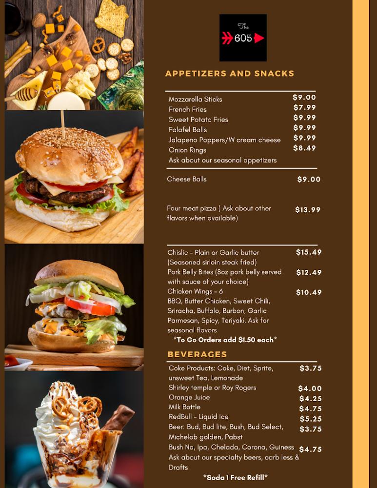 Families will appreciate the kid's menu, featuring items like chicken strips and grilled cheese. The variety ensures there's something for everyone, making The 605 a perfect stop for any meal of the day.